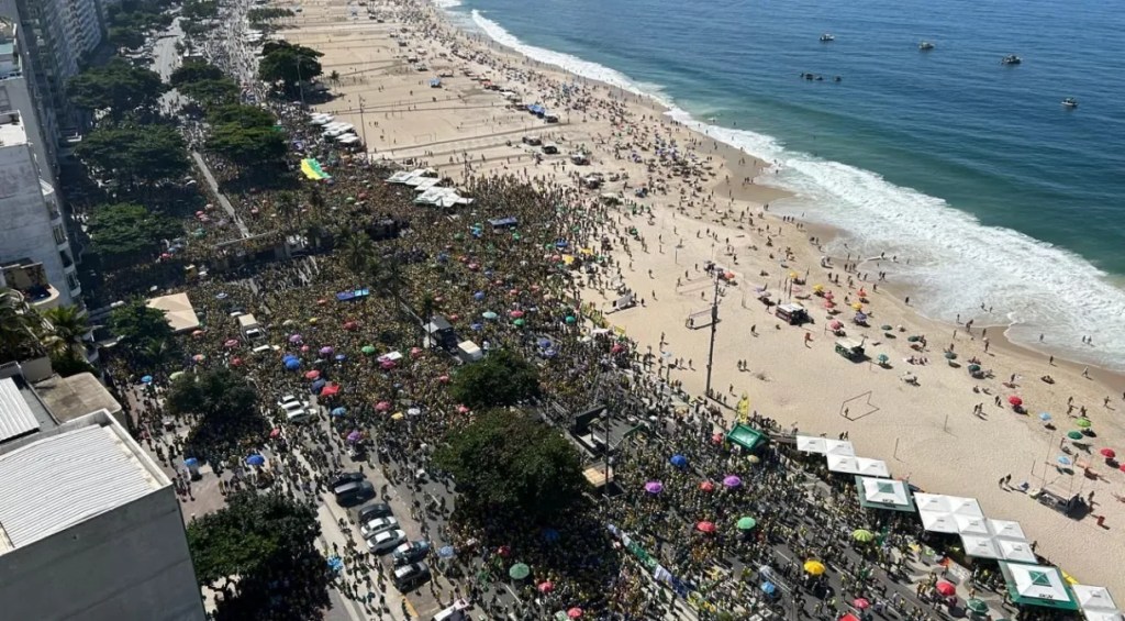 O evento Bolsonarista, puxado pelo Bolsonaro e por seus apoiadores, dentre eles o Pastor Evangélico Silas Malafaia, que tem um patrimônio estimado em 220 milhões de dólares, que aconteceu neste domingo na praia de Copacabana no Rio de Janeiro, dois meses depois do mesmo evento ter ocorrido em São Paulo, estava sendo programado para ser o maior evento politico da História do Rio de Janeiro. Mas não foi bem isso que aconteceu, enquanto o evento em Fevereiro na cidade de São Paulo contou com aproximadamente com 185 mil pessoas de acordo com os pesquisadores do Monitor do Debate Político no Meio Digital, da Universidade de São Paulo (USP), o evento no Rio contou com 32,7 mil pessoas, um numero bem abaixo do esperado pela organização do evento, inclusive esse numero é a metade do numero do evento em favor a Bolsonaro ocorrido este ano no mesmo local.