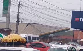 Na avenida Cruz das Armas na mediação de Oitizeiro, um posto de combustível teve seu teto derrubado pelas fortes chuvas.